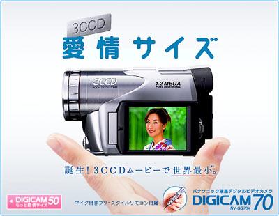 Tel que vu à la télé nippone. Panasonic vient de sortir une mini caméra à 3CCD. Je ne sais pas encore le prix, mais le design seul vaut la peine qu j'en parle. cliquer sur la photo pour voir une démo sur le site japonais de Panasonic.