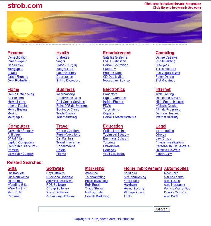Malheureusement un certain monsieur Strob, de son nom de famille avait enregistré le nom il y a plusieurs années et dès qu'il l'a laissé tombé, une compagnie de Cybersquatting (c'est à dire une compagnie qui achète des noms connus en espérant les revendre cher ou rediriger le traffic) l'a enregistré en espérant un jour faire la piasse.