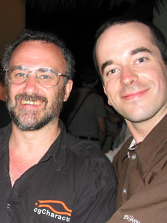 Je m'amuse à fond ici (au Siggraph de san Diego), je continue de rencontrer des gens sympathiques de partout et y'a beaucoup de Québécois dans les booths de l'exposition: Softimage, discreet, inspec (scannage 3D), Kaydara (motion capture), ce sont toutes des boites de Montréal (presque toutes sur la rue St-Laurent) qui ont un stand d'exposition au Siggraph.