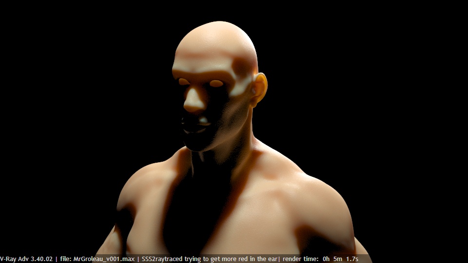 V-Rays SSS2 was so difficult to control when you wanted to add some more red in the ears, the rest of the skin started to get some green (or the complimentary color).